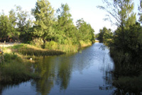 わき目を振らずに橋を越えましょう、水路が続いています。